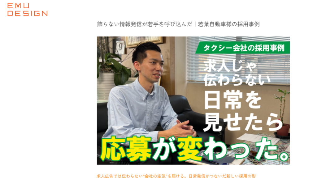 弊社HPを作成いただいた「EMU DESIGN」様に、弊社の採用活動についての取材を、